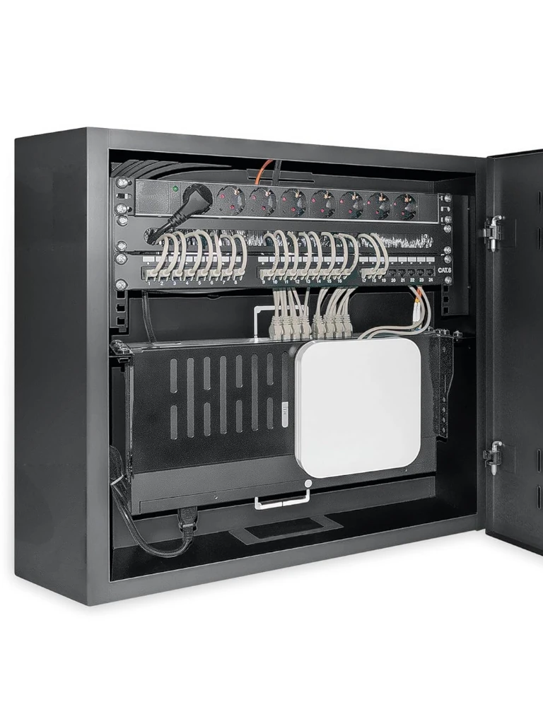 INTELLINET 713689 - Gabinete mural 19" de tamaño reducido / Caja delgada que ahorra espacio con sólo 17.0 cm de profundidad, 4U de rieles horizontales y 2U de rieles verticales / Negro
