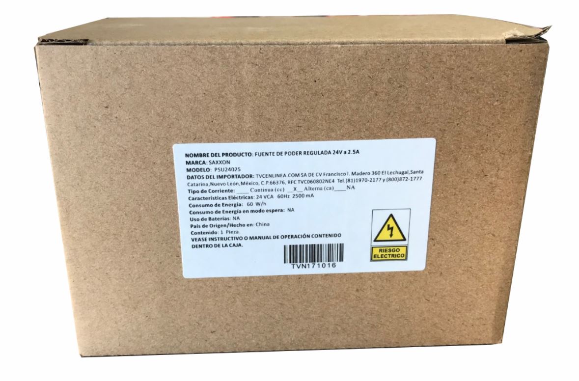 SAXXON PSU24025 - Fuente de Poder de 24 Vca a 2.5 Amperes/ Cable de 2.5 Metros/ Entrada 110 Vca/ Protección contra Sobre Cargas/