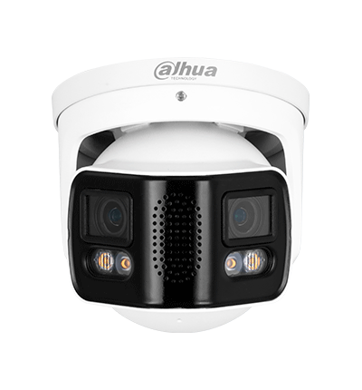 DAHUA IPC-PDW5849-A180-E2-ASTE Cámara IP Full Color con visión de 180° y doble lente de 4 MP. Ofrece protección perimetral, mapa de calor, conteo de personas, y LED de 40m. Cuenta con multivisión, WizMind, audio bidireccional, ePoE, H.265 e IP67.