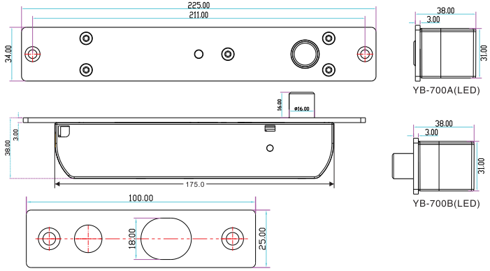 YLI YB700ALED - Cerradura eléctrica de Perno con indicador led, de uso rudo para control de acceso , cuenta retardo de tiempo de 3,6 y 9 segundos con hasta 2000 Kg de fuerza de sujeción