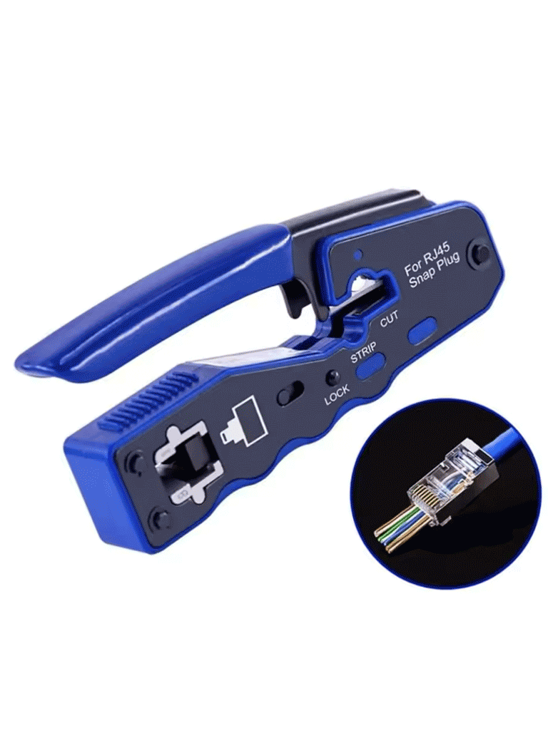 TCE LN-NET-EP670 - Herramienta de Corte y Terminado para Plugs Pass Through RJ45, Acero al Carbón, Mango Ergonómico ABS + TPR.